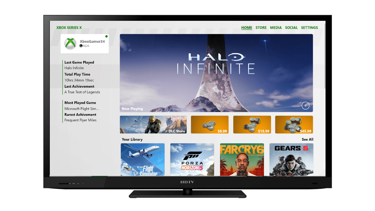 For my first post-class project I decided to go personal and take a crack at re-working the main menu on the Xbox One/Series consoles. My reason for doing this is when I bought an Xbox Series X last year, I was expecting that new console experience. But when I started it up, I was greeted with the exact same screen that was on my Xbox One X. It was nice that it was familiar but also a tad disappointing given I just dropped $500 on a new console and didn’t quite have that new console experience. I bought a PS5 as well and when I started that up it felt like an event, complete with a new menu system. Sure it had a similar style to the PS4, but it wasn’t an exact copy so it still felt fresh.