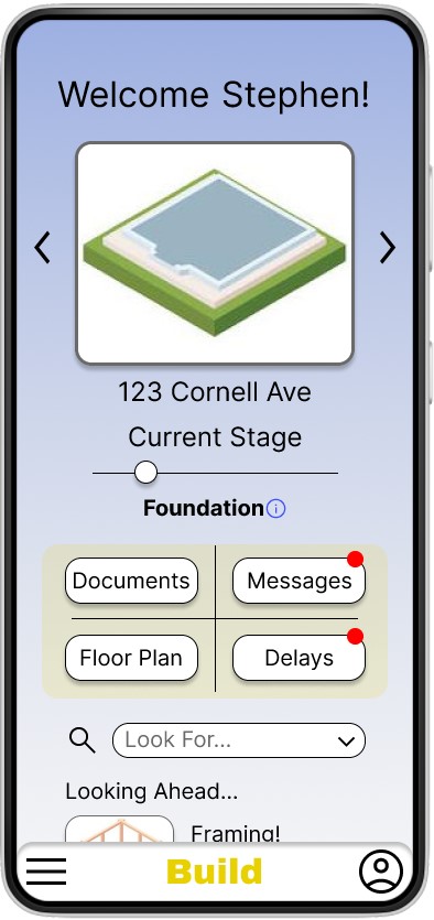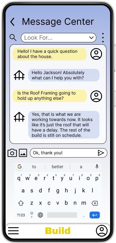 Building a house is a major life event that can be made harder due to poor communication with the builders and lack of timely updates. Having an app as the go-to method of communication between the customer and builders could ease the process and allow the builders to offer updates quickly.