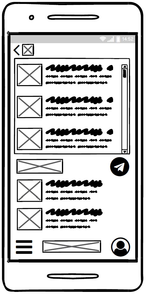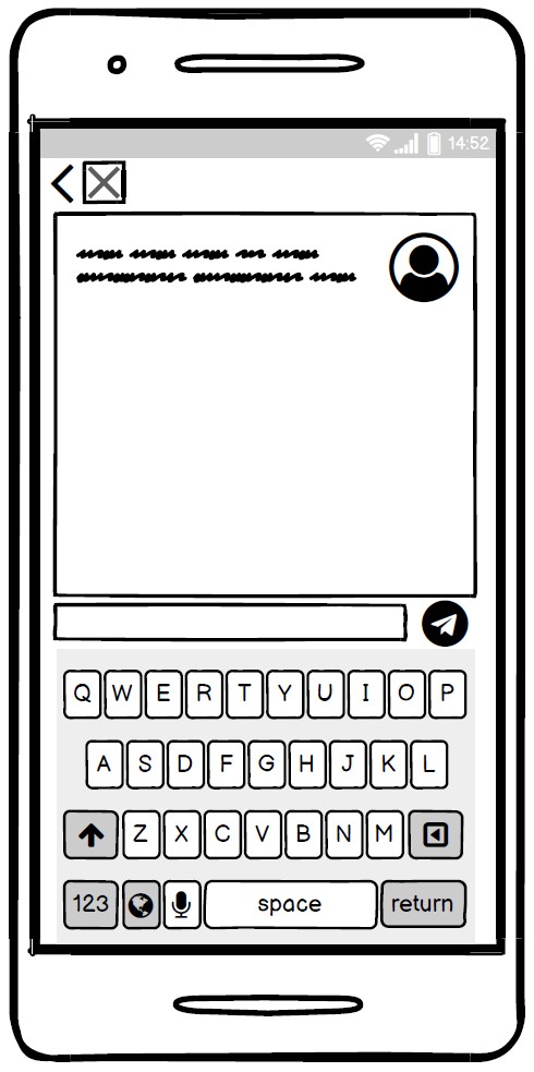 I made a quick mockup in Balsamiq showing the main screen and messaging screen.