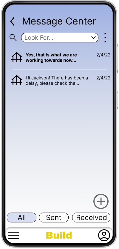 Rationale: The biggest frustration from the interviews was the inconsistent communication and text messages/emails getting lost and unanswered. Having one central location for each user will make it easier for the builder to see who is trying to communicate with them . This will reduce the tendency for messages to get lost or overlooked. Instead of the builder having to find emails and text messages from customers mixed in with their other ones, this gives them one specific place to look for that communication.